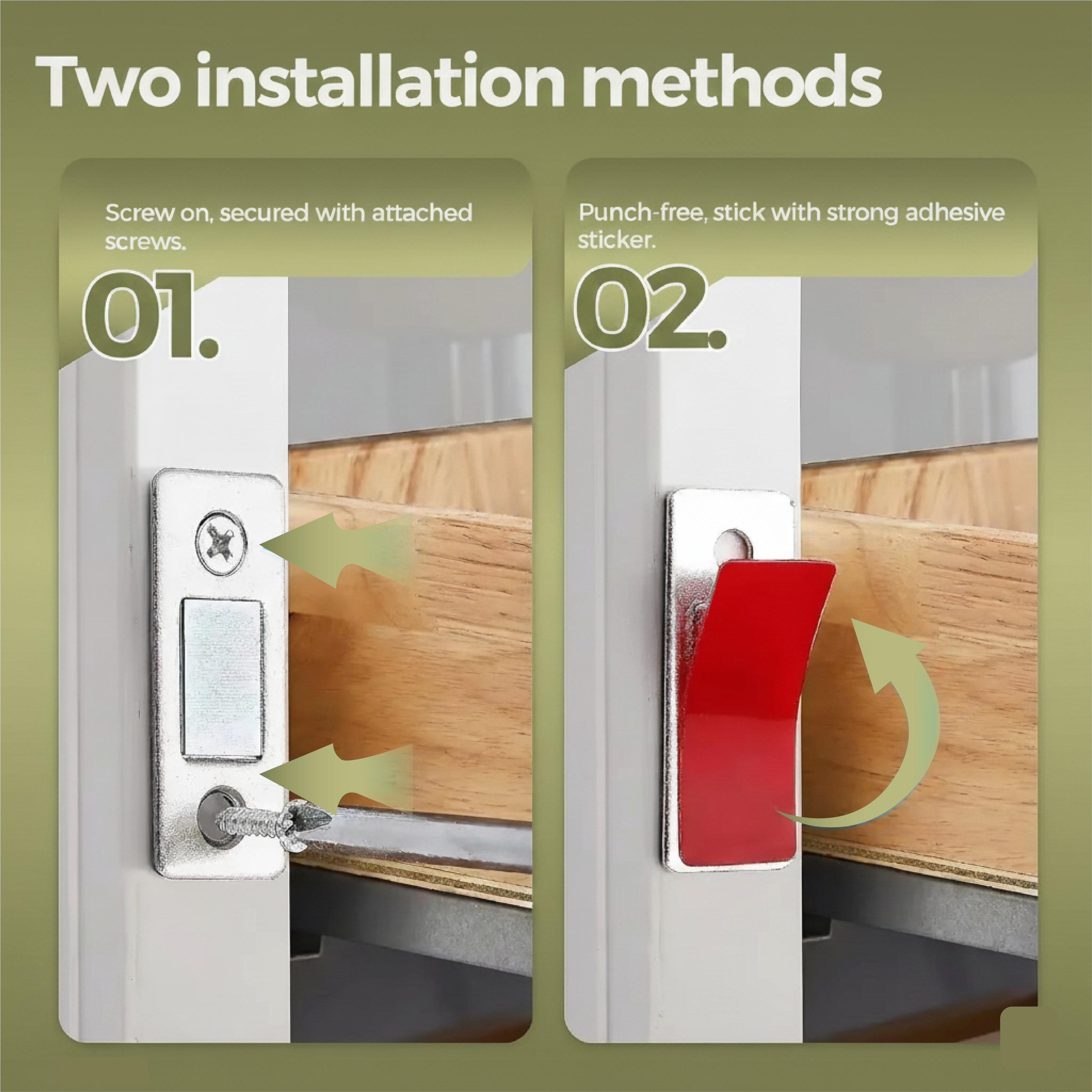 Answer 3: Absolutely! The product features high-strength magnets that securely hold your cabinet doors and drawers closed when needed. This powerful magnetic hold not only prevents accidental openings but also helps create a quieter atmosphere in your home.